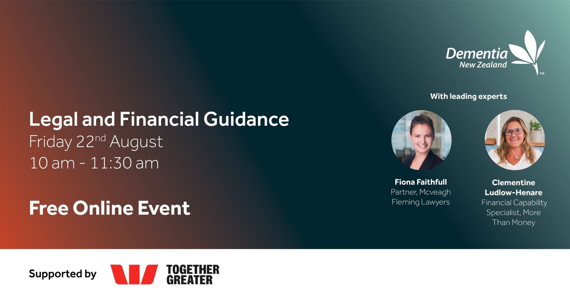 Fiona Faithfull is a Partner at McVeagh Fleming with a strong background in property development and business law. Beyond her legal expertise, Fiona is passionate about supporting individuals and families navigating a dementia diagnosis. Inspired by her own experience caring for her mother, she combines her professional skills with empathy to help people prepare for the future. In collaboration with Dementia Auckland, Fiona offers a free service to assist those in difficult circumstances and discounted rates for those with a dementia diagnosis, helping them put essential documents in place, such as Wills and Enduring Powers of Attorney (EPAs).